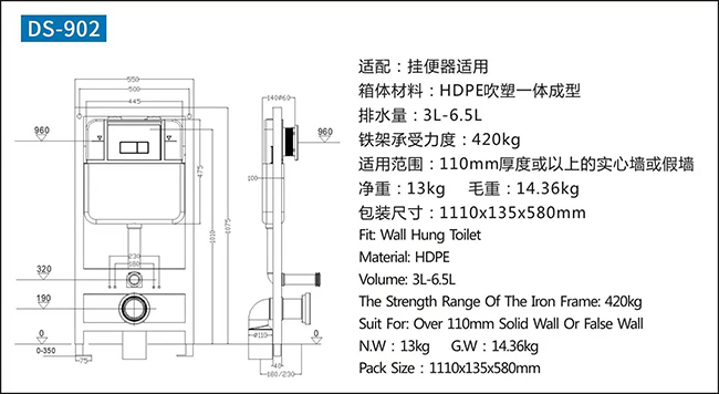 三、中國普遍商品房實墻是比較薄,市面上在售的掛廁水箱又有普通款和薄款,一般尺寸從8CM-13CM之間。